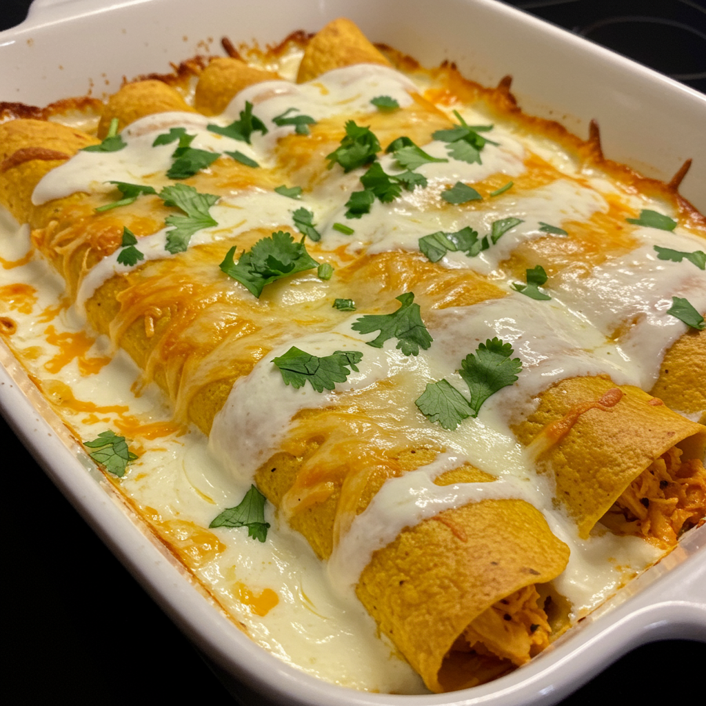 5. Enchiladas de pollo con salsa blanca cremosa