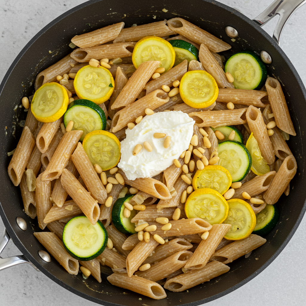 Esta pasta está cargada de calabaza, queso de cabra y piñones: sin salsas pesadas, solo pura comodidad .