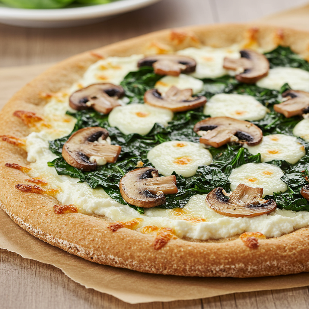7. Pizza blanca de champiñones y espinacas