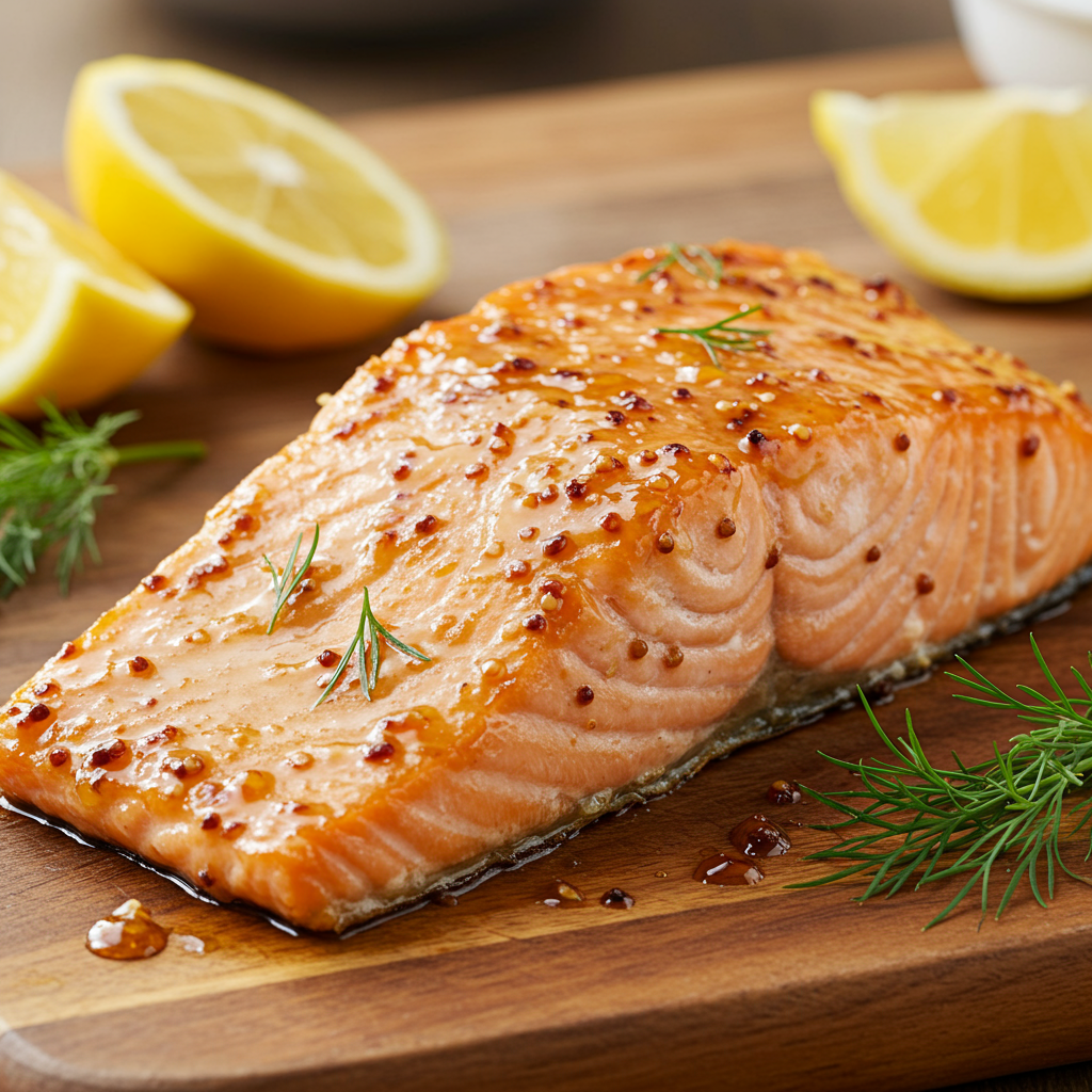 2. Salmón glaseado con mostaza y miel