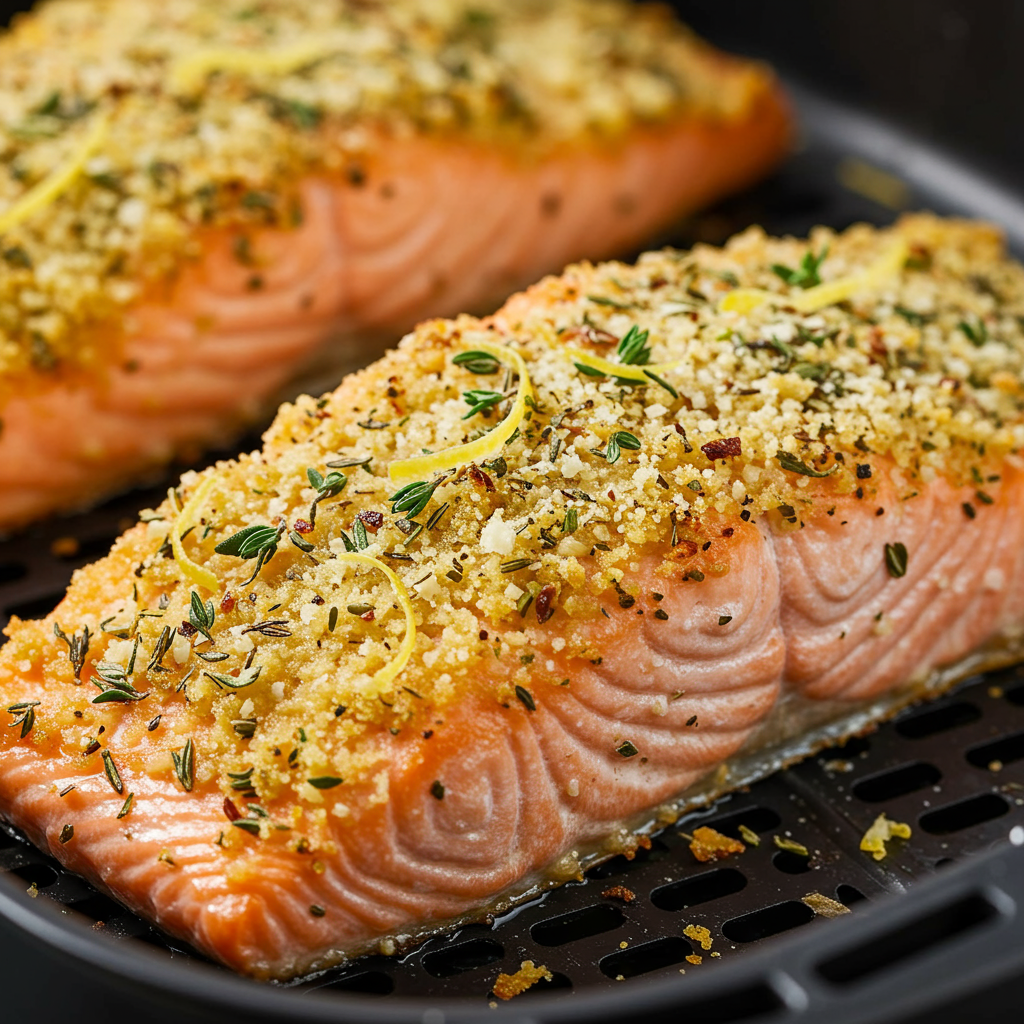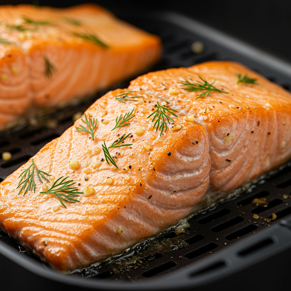 Consejo profesional: para que quede más crujiente, rocíe ligeramente el salmón con aceite de oliva antes de freírlo al aire.