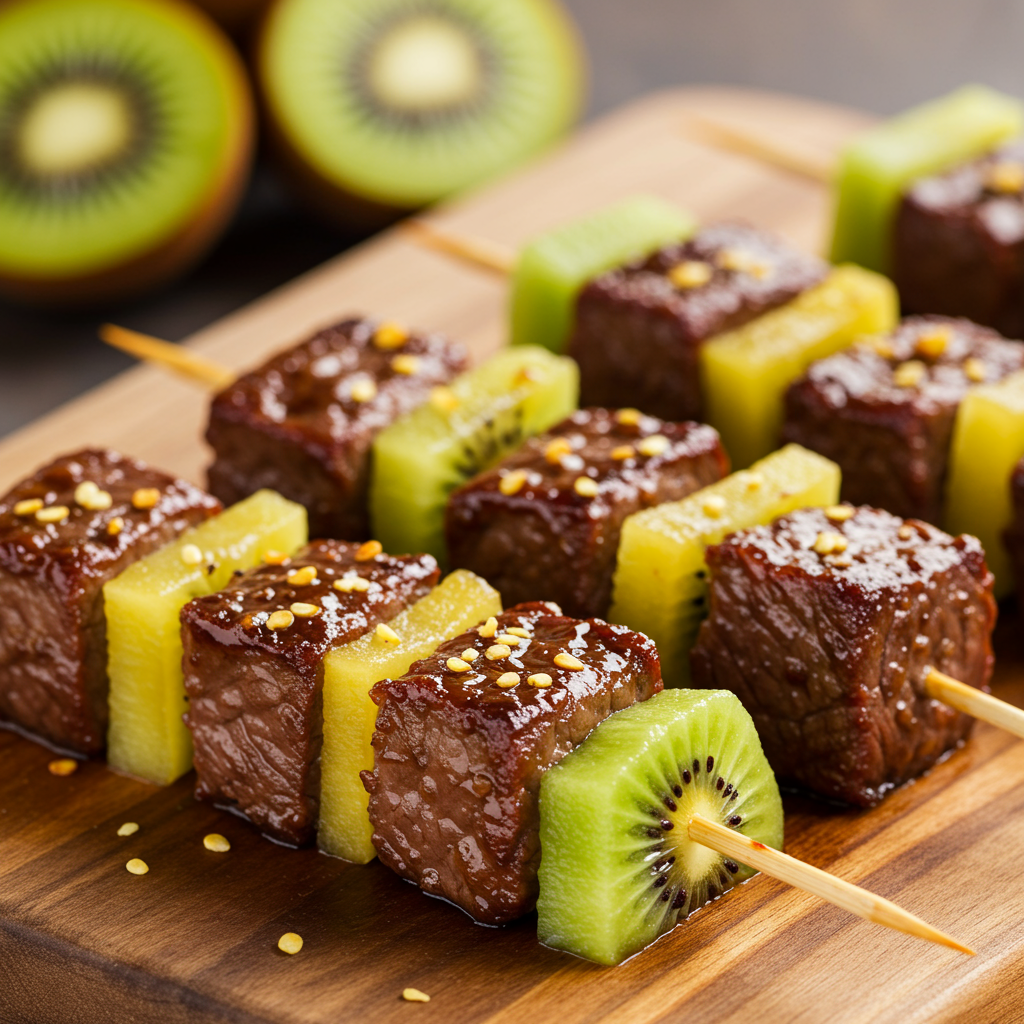 21. Brochetas de carne y cebolla umami