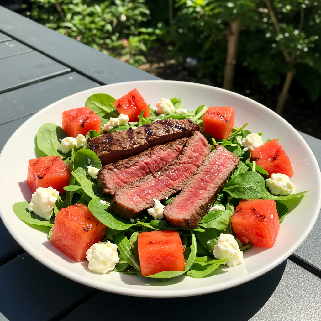 19. Ensalada de sandía y bistec