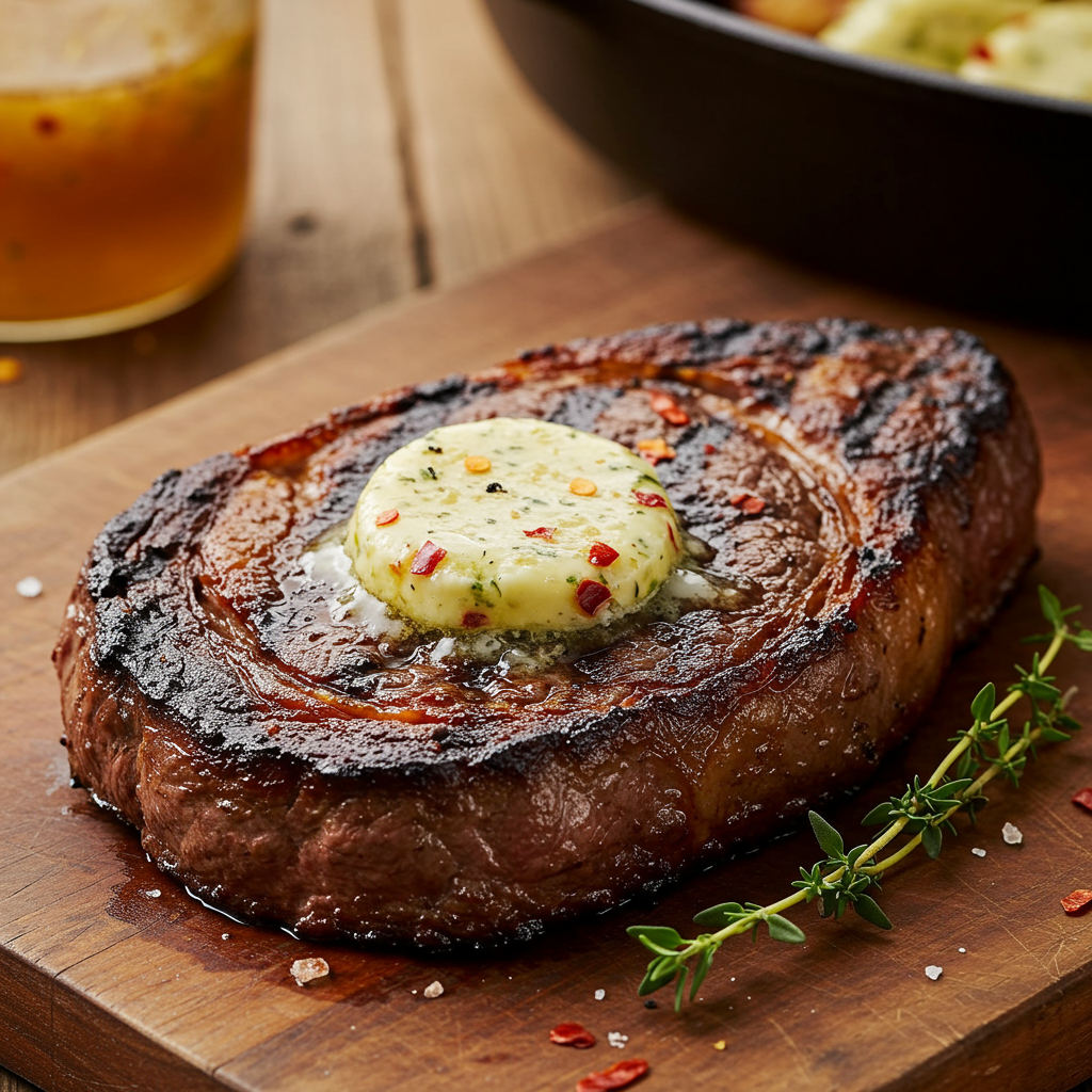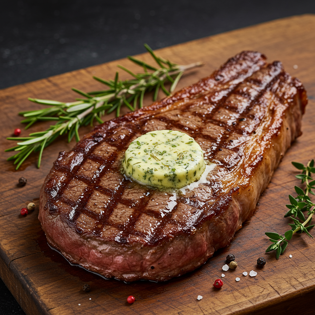 2. Filetes de tira a la parrilla perfectos con mantequilla de hierbas