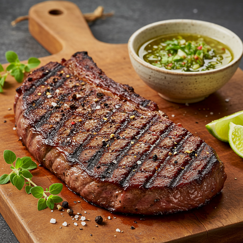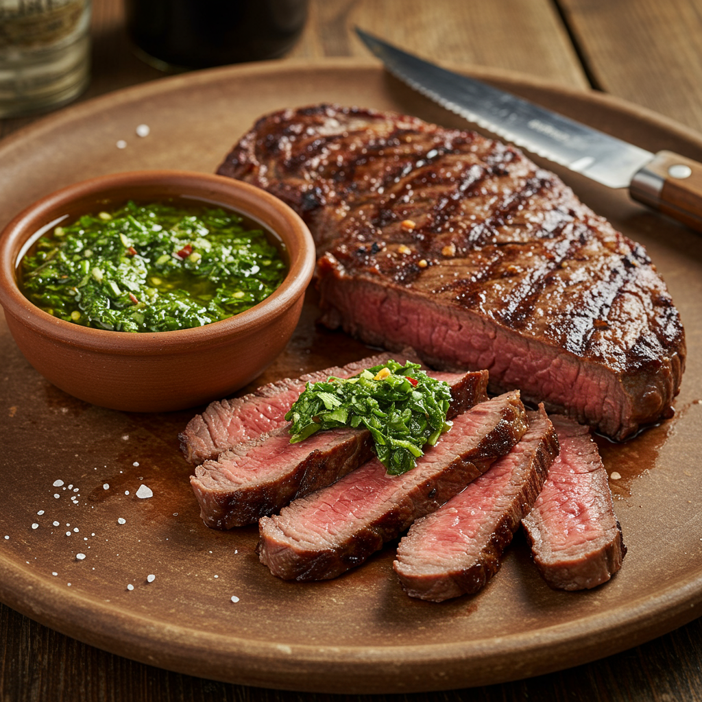 Termine su experiencia de parrillada con esta clásica preparación argentina que muestra cómo una simple salsa de hierbas puede realzar una carne de res asada a la perfección .