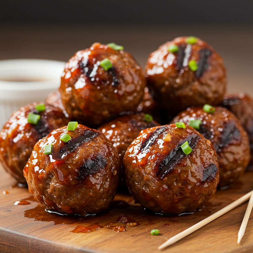 Estas jugosas albóndigas están glaseadas con una salsa coreana agridulce que las hace irresistibles. Son perfectas para fiestas o como una versión divertida de una barbacoa tradicional.