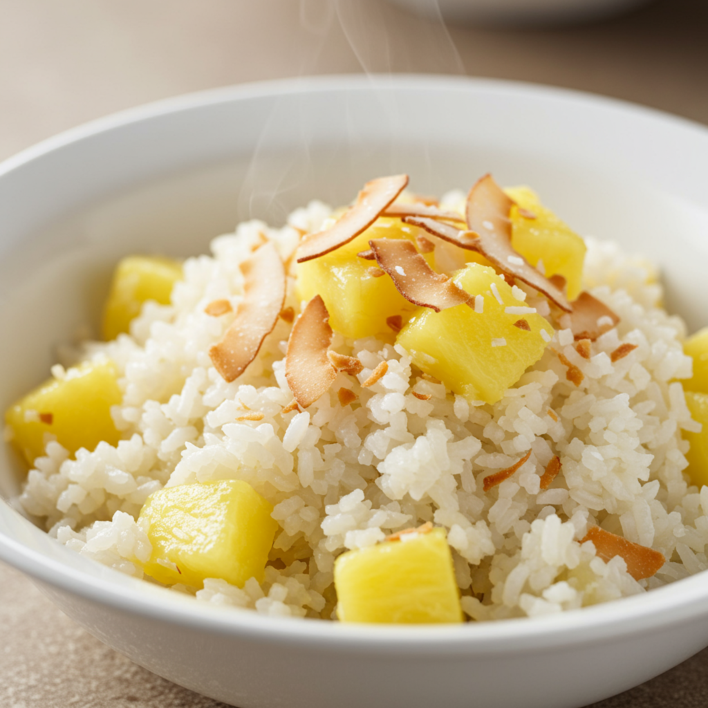 - Cocine el arroz en leche de coco (proporción 1:1).