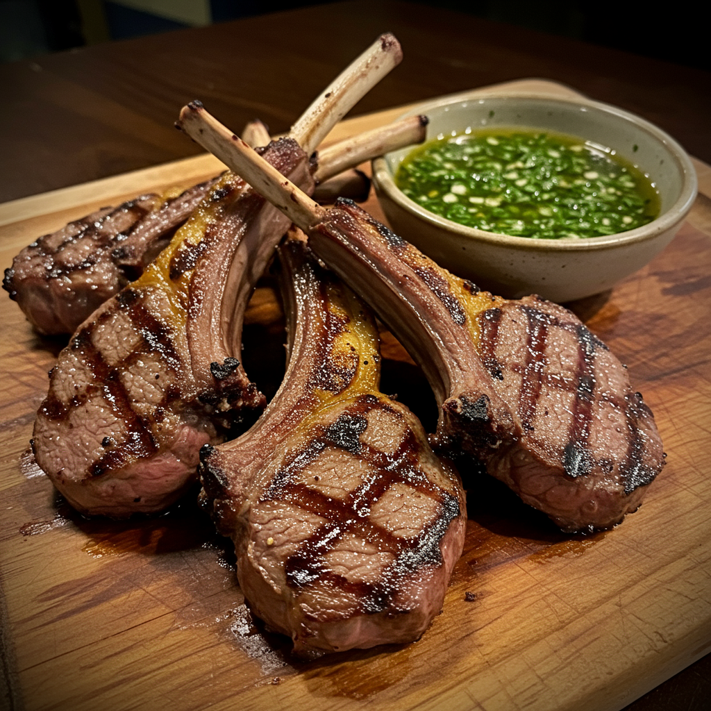 32. Chuletas de cordero a la parrilla con chimichurri de menta