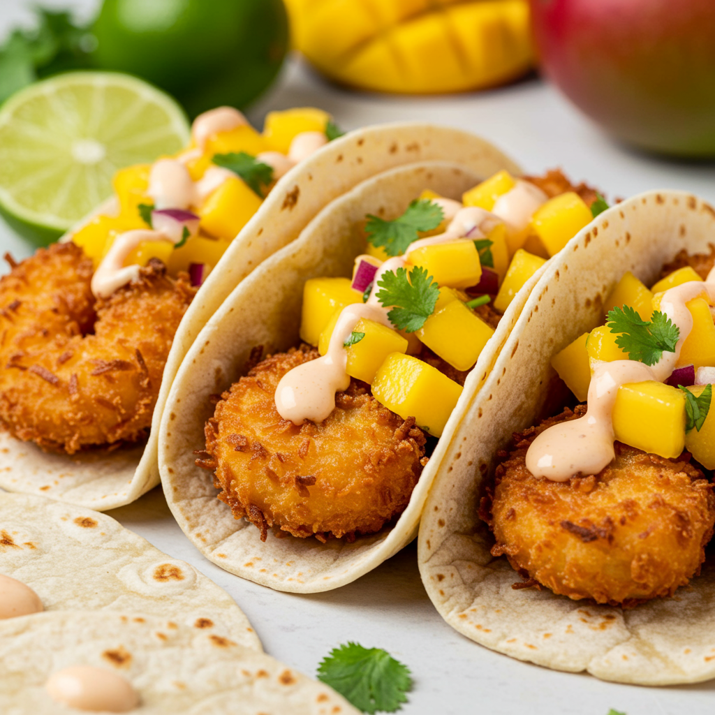 - Sirva en tortillas calientes con salsa de mango y crema de lima.